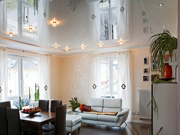 Entre los numerosos tipos de techos tensados, los brillantes se distinguen de otras texturas por su superficie de espejo.
